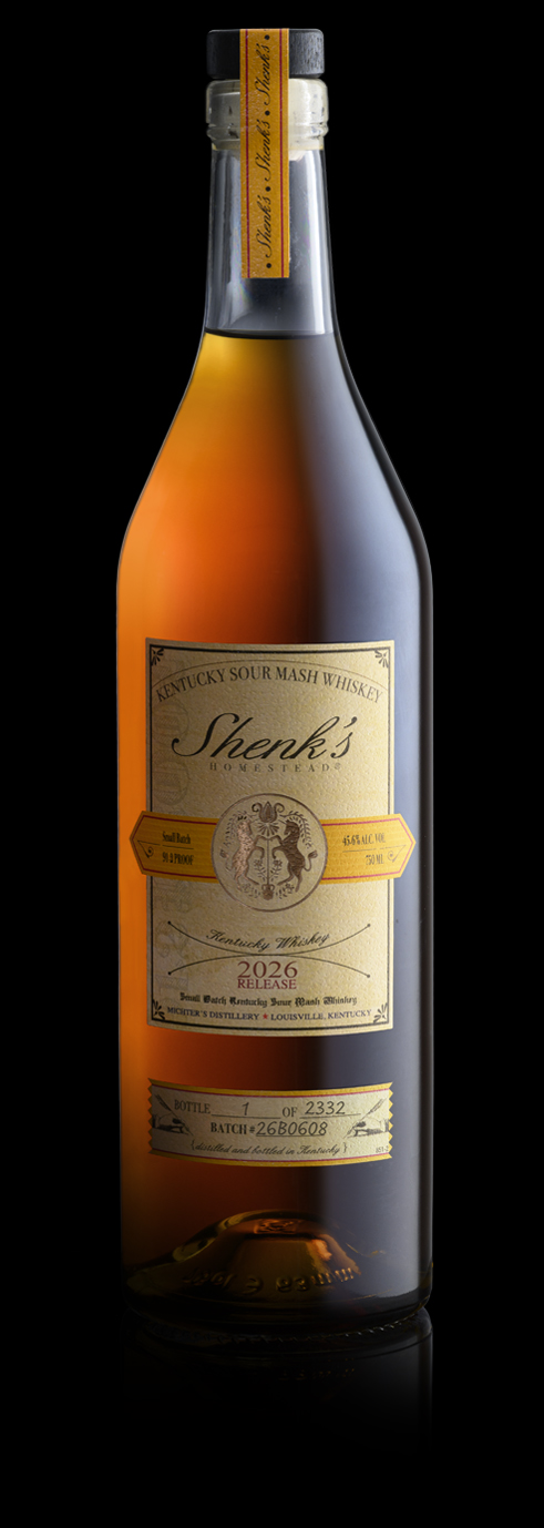 Shenk’s Homestead Sour Mash Whiskey honors the legacy of historic American whiskey figure John Shenk, who in 1753 founded a distillery that was to become known as Michter’s in the 20th Century. It is made in Kentucky according to the traditional Sour Mash process whereby a portion of the previously distilled whiskey mash (referred to as “setback”) is added into the next batch. This full-bodied small batch whiskey is 91.2 proof.